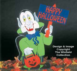 Dracula holding "HAPPY HALLOWEEN" sign in one hand, and a pumpkin in the other hand. (30 1/2" x 23") More InfoDESCRIPTION: DRACULA HOLDING "HAPPY HALLOWEEN" SIGN IN ONE HAND, A PUMPKIN IN THE OTHER HANDDIMENSIONS: 30-1/2" H X 23" WWOOD: 1/2" OR 3/4" THICK...- $8.45 USD