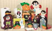 Add to your holiday fun by making these clever kitchen helpers.10 Designs: Witch papertowel holder, Dracula papertowel holder, Three cookie jar stoppers: Pumpkin, Skeleton head and Dracula, Three recipe holders: Dracula, Cat and Pumpkin, two napkin holders:Witch/Bat, Ghost/Cat/PumpkinMore InfoDESCRIPTION ADD TO YOUR HOLIDAY FUN...- $9.45 USD