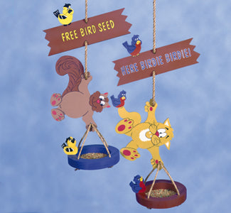 DESCRIPTION: 2 CLEVER BIRDFEEDER PROJECTS - A CRAFTY CAT AND A SILLY SQUIRREL DIMENSIONS: SQUIRREL FEEDER - APROX. 28 " TALL (SQUIRREL IS 10-1/2" X 14-1/2") CAT FEEDER - APPROX. 30" TALL (CAT IS 10-1/2"...- $8.45 USD