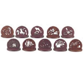 Set of 10 unique tea light holders. Use interchangeable base to change scenes in only seconds.More Info- $11.45 USD
