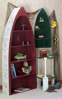 Five big shelves offer lots of storage space for collectables. Easy to make from our full size pattern. (32" wide x 10" deep x 72" tall) More Info DESCRIPTIONFIVE BIG SHELVES OFFER LOTS OF STORAGE SPACE FOR COLLECTIBLES IN THIS LARGE ATTRACTIVE ROW BOAT...- $12.45 USD