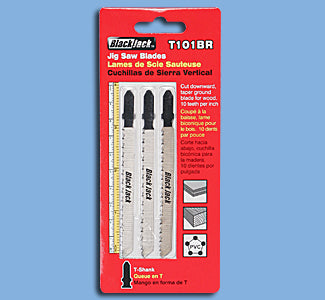 *Can MIX 'N' MATCH 3 or more any type Jig Blade Packs!!*The smoothest cutting blades available! Long lasting "BLACK JACK" T-shank reverse cutting jig(sabre) blades eliminate top side chipping. (Size: 4" x 5/16" x .05) (10 Teeth per Inch) Add items to your cart...- $3.99 USD