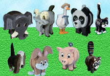 Make this specially selected group of Farm Animals with our full-size patterns and instructions. Includes the pony, goat, cow (not shown), rooster, pig, hen, goose, bull, and the sheep. Complete instructions to make four sizes of each animal from 4" to 20" tall.More InfoPATTERN...- $28.45 USD