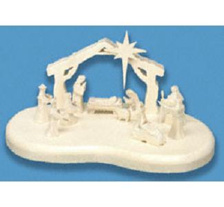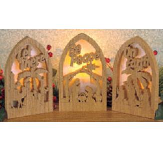 This eye-catching symbolic Nativity will brighten your mantel this holiday season! Make this blessed display on your scroll saw from layers of thin plywood and small LED lights. Our full-size pattern gives you complete step-by-step instructions including cutting, assembly and adding the back lighting....- $12.45 USD