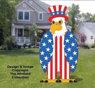 Make a HUGE Patriotic statement this July 4th by displaying this colorful upright Eagle in your yard! Easy to make--just trace our full-size pattern onto a 48" x 96" sheet of plywood and cut out using a hand held jigsaw then paint. (94" tall)More...- $17.45 USD