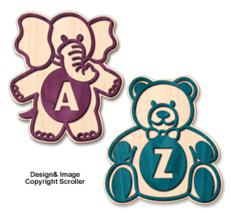 Entzückendes Elefantenbaby und Teddybär zum Präsentieren im Zimmer Ihres Kindes. Die Vorderseite ist aus 1/2" dickem Ahornhartholz geschnitten und für die Rückseite verwenden Sie 1/4" dickes Hartholz Ihrer Wahl. Lassen Sie es naturbelassen oder fügen Sie Ihre Lieblingsfarbe hinzu, damit es zur Einrichtung Ihres Zimmers passt. Das vollständige Alphabet ist enthalten, damit Sie es nach Wunsch personalisieren können. (13" hoch x 12" breit)