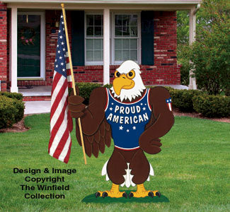 Make a BIG Patriotic statement this July 4th by displaying this colorful upright Eagle in your yard! Easy to make--just trace our full-size pattern onto a 24" x 48" plywood panel and cut out using a hand held jigsaw then paint. (47" tall)More InfoDimensions:...- $13.45 USD