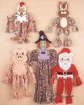 Colorful decorative figures have wooden bodies with arms & legs made from strips of material! No sewing skills required! Pattern plus instructions for 7 fun projects--Santa, Witch, Pig, Bunny, Chicken (shown) plus Frog & Dalmation (bodies up to 13" tall) More InfoPrice increase per...- $8.45 USD