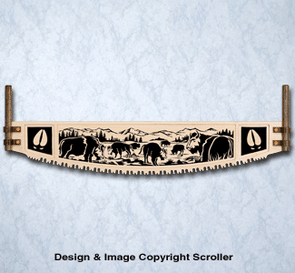 Create our unique Crosscut Saw Design for display in your home or up north at the cottage. The scrolled Buffalo, Mountains, Lake and the range are a realistic scene and are bordered by authentic looking buffalo foot prints. The finished saw measures 25" long x 8" high.