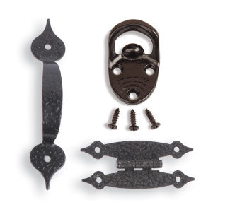 Includes Colonial Style Hinges (#BHNG5) and Handle (#BHNG9) as well as our Bottle Opener (#BT2). All screws are included. (pattern #W1852 sold separately)