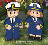 Full-size patterns are included for both outfits shown. (largest is 31-1/2" tall)