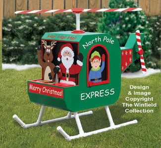 Plans include complete instructions and assembly diagrams plus full-size patterns for all characters, helicopter pieces, wood gears, snowflakes, the words shown and much more. (86" long, main rotor blade 60" long)