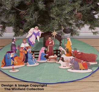 Identical in realistic detail to our Life-size Nativity, this project is scaled down to display under your tree. Full-size patterns plus painting details for all 16 pieces shown plus the stable. (Largest figure stands 10" tall)
