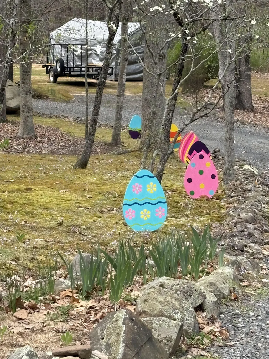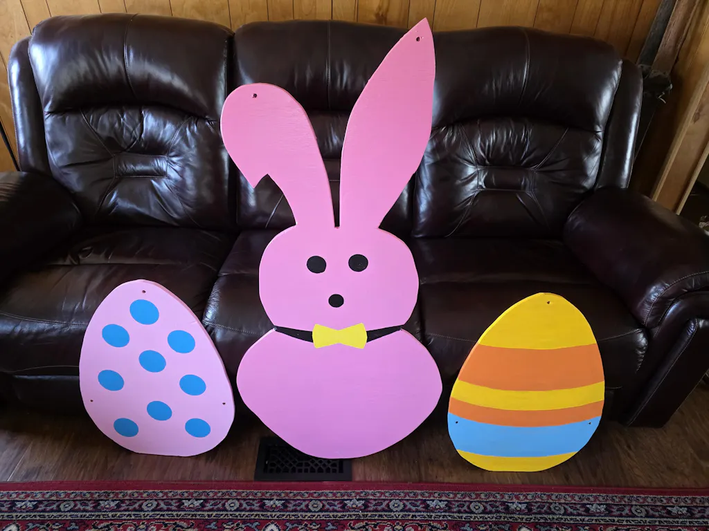 We love the egg patterns. Easy to cut out and paint. Our neighbors watch to see what we put out for the holidays.