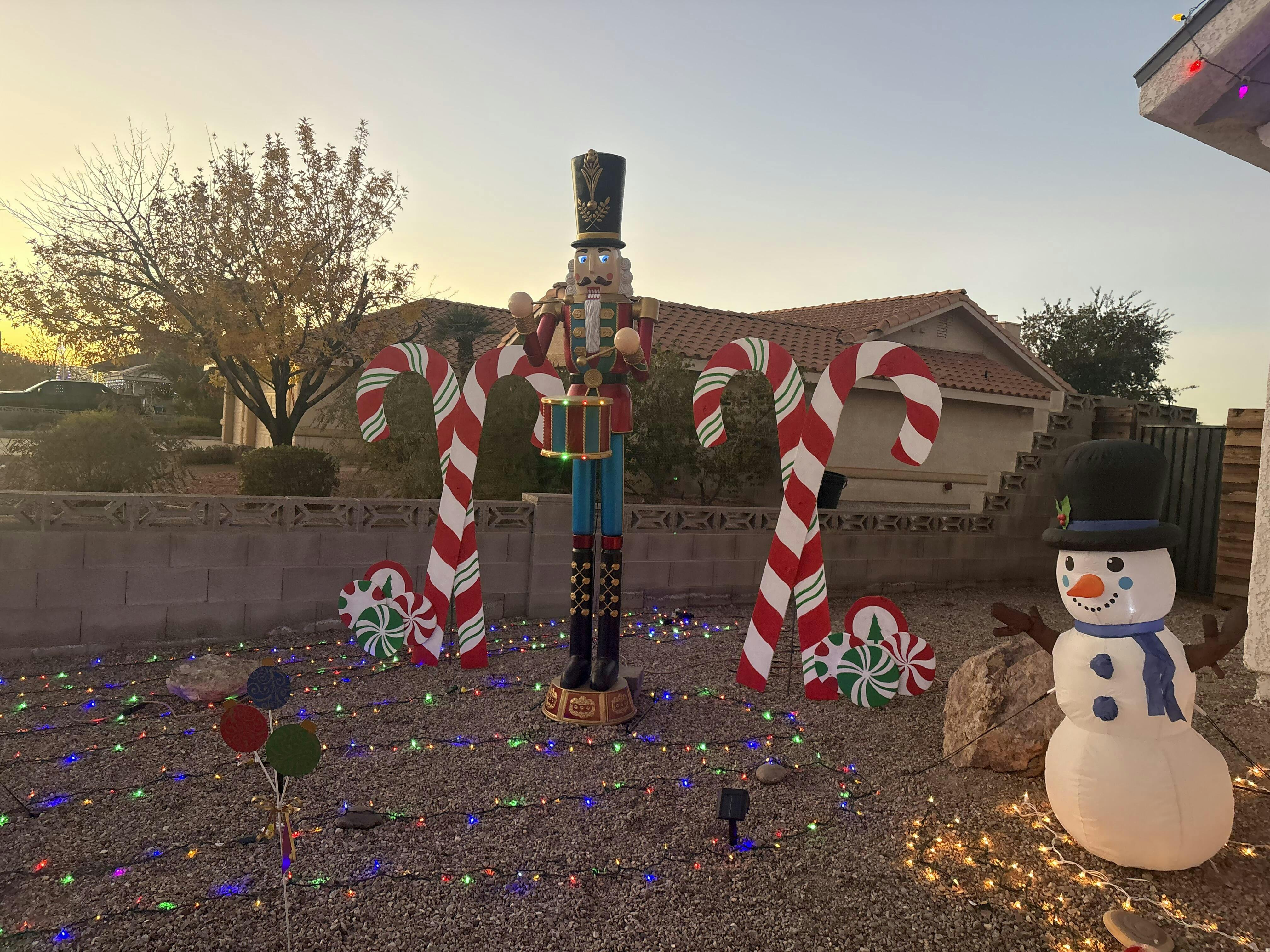 Dimensions: Mints are approx 11" in diameter and candy canes are 69" tall. Candy Cane is 23" wide across the top (the crook of candy cane).